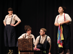 Wieso kommen Frauen in Märchen eigentlich immer so schlecht weg? Zum Beispiel in „Die Zwölf Brüder”: Die eine verliert alle ihre dreizehn Kinder, die andere wird auf dem Scheiterhaufen verbrannt und die dritte wird … frittiert. Zeit, sich die Märchen der Gebrüder Grimm einmal neu vorzunehmen. Vier Schauspielende stolpern durch 16 Märchen und setzen sich mit viel Elan, Witz und Gesang mit der Brutalität und Absurdität der Geschichten auseinander.