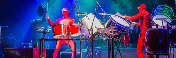 Spektakuläre und atemberaubende Trommelshow zweier rhythmusbesessener Schlagzeuger auf Instrumenten aus aller Welt.